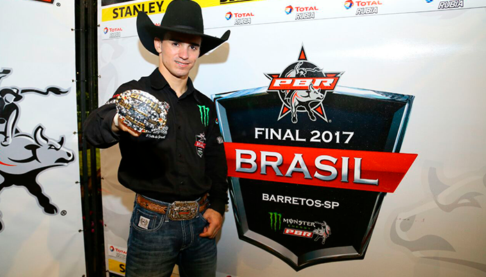 BARRETOS (SP) – O competidor José Vitor Leme é o atual Campeão Brasileiro pelo Monster Energy PBR, principal campeonato de montarias em touros do país. O atleta garantiu o título depois de fazer a maior nota da noite, 88,50 pontos, a bordo do touro Zorro, da Cia Pemag, durante a final da etapa de Barretos.