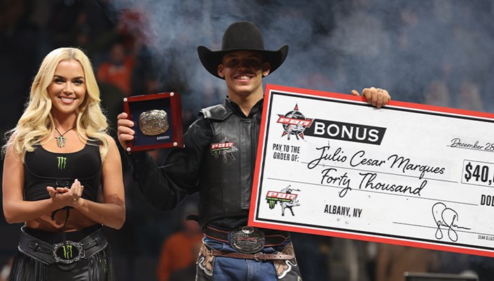 Um dos destaques desta nova temporada, Júlio César obteve nota nos dois primeiros touros que montou na etapa de Albany e se classificou para o Round Final em terceiro lugar. Escolhendo montar Tulsa Time, ele marcou 88,75 pontos em sua última apresentação, assumindo a liderança e garantindo a vitória com a queda dos dois atletas que estavam a sua frente.