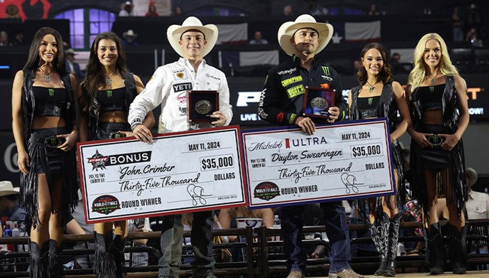 A terceira noite de competição no Cowtown Coliseum terminou com um empate entre John Crimber e o campeão mundial Daylon Swearingen, que montaram respectivamente os touros Brown Bomber e Hoka Hey, obtendo 89,25 pontos cada um para não ser ultrapassados por mais nenhum concorrente na conclusão do Round 3.