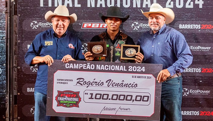 Em uma noite que nem os melhores roteiros de cinema poderiam prever, o mato-grossense Rogério Venâncio conquistou o título de Campeão Brasileiro de Montaria em Touros pela Professional Bull Riders. A Final Nacional PBR EcoPower é a etapa decisiva da principal Liga deste esporte no mundo foi realizada de 15 a 18 de agosto na arena da Festa do Peão de Boiadeiro de Barretos.