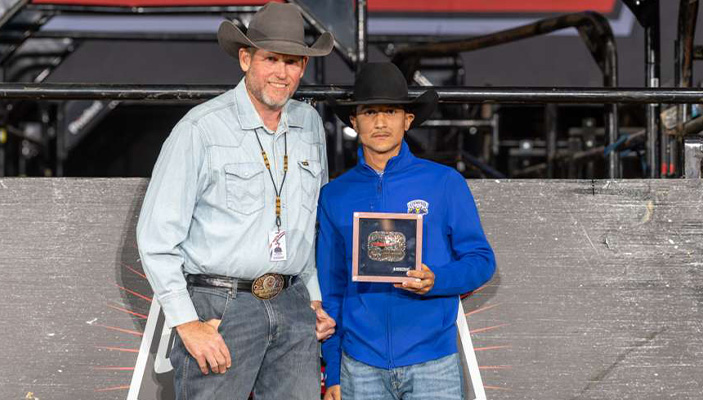 Apesar de não competir na etapa final realizada nos dias 22 e 23 de outubro no South Point em Las Vegas (EUA), o brasileiro de 19 anos que liderava o ranking devido aos pontos conquistados no Brasil, não foi alcançado por nenhum concorrente e garantiu a fivela da temporada.