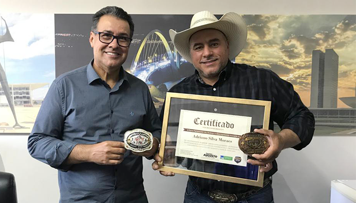 Adriano Moraes ainda recebeu uma placa e uma fivela como homenagens.