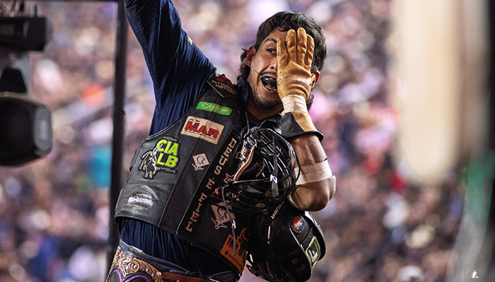 O sul mato-grossense Higor Moisés Marçal foi o melhor da noite de sábado na Final Nacional da PBR em Barretos